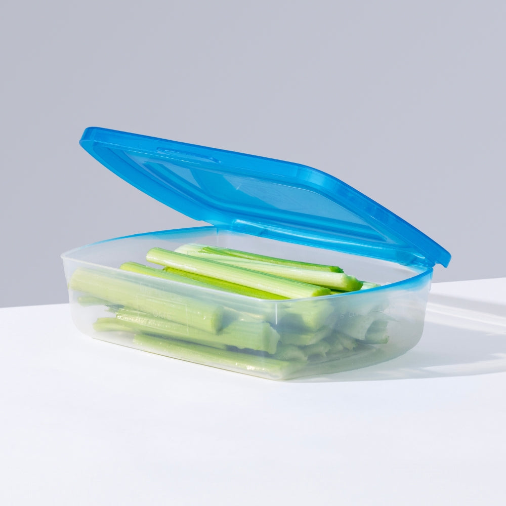 The Mr. Lid Deluxe Container holds 6 cups (48 oz), offering the same spacious size as the Salad Container but without the dressing cup insert. It’s ideal for larger meals, bulk snacks, or baked goods. For added organization, it’s compatible with the Deluxe Bento Insert—two pieces with four compartments each—great for separating ingredients, snacks, or meal components all in one container.