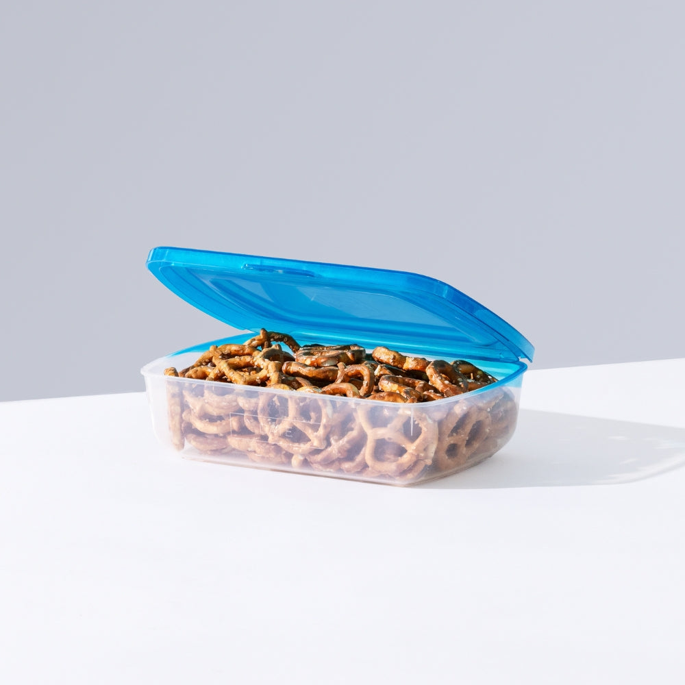 The Mr. Lid Sandwich Container holds 18 oz and is sized just right for sandwiches, wraps, or stacked snacks. It’s a lunchbox staple—great for keeping bread from getting squished and everything in place. Also works well for sliced fruit, cheese, or small leftovers that need a little more room than a standard container.